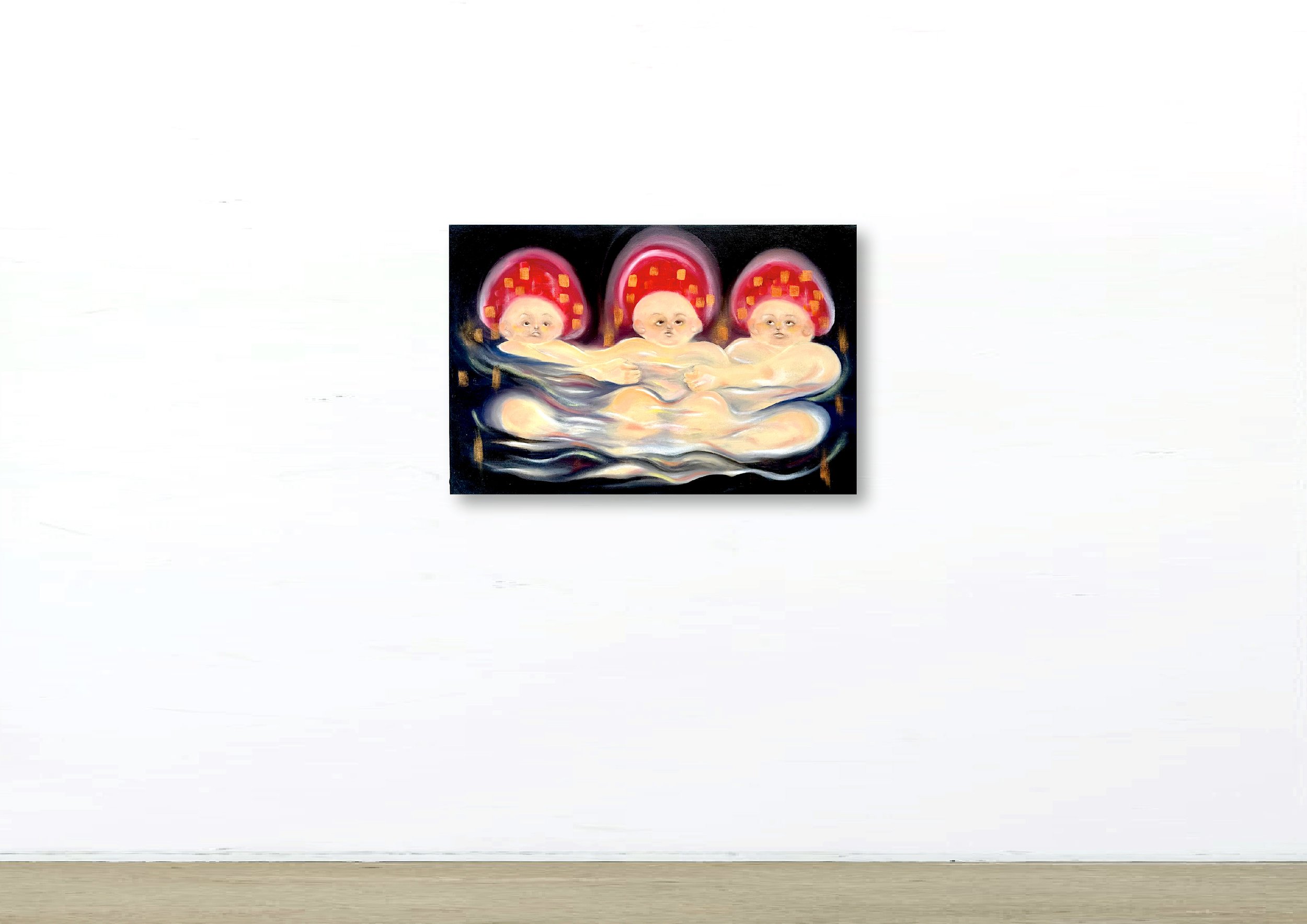 Right: I heard you crying in my dream2024 Oil Paint on Paperboard H 29 x W 30 cm H 44 x W 45.5 x D 2 cm (After Framed)